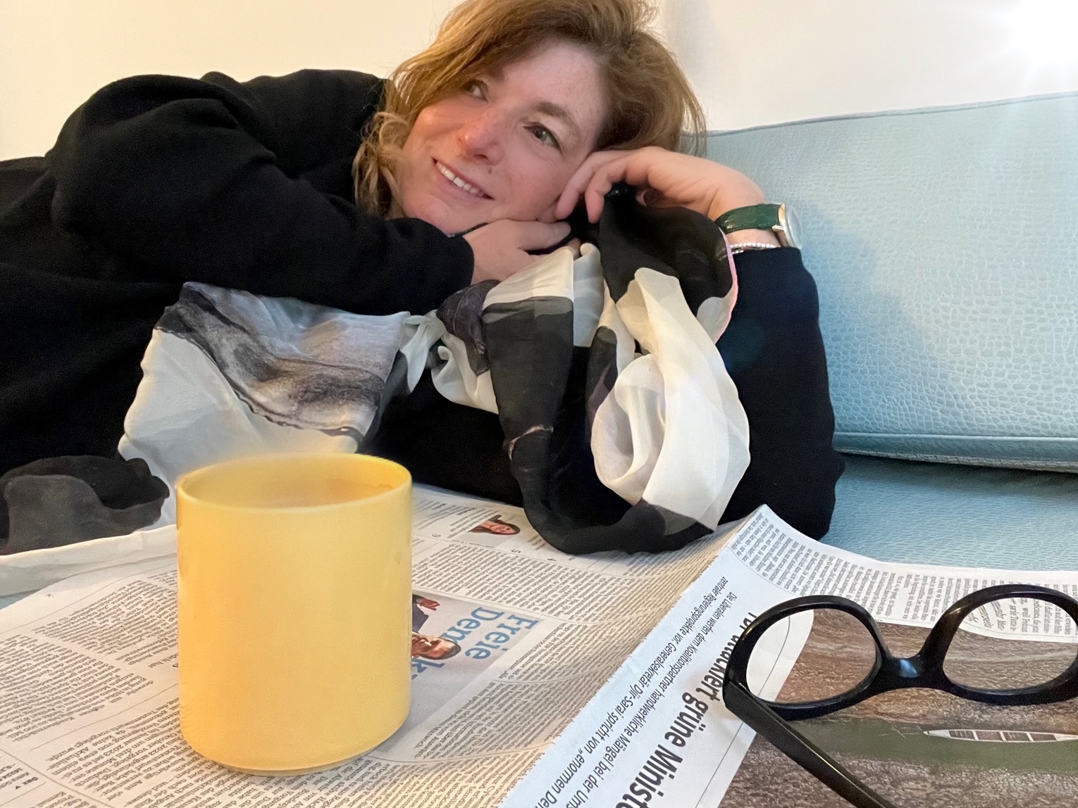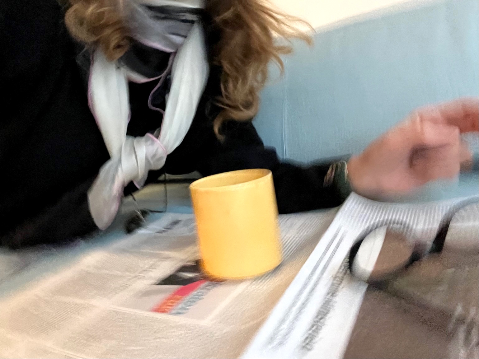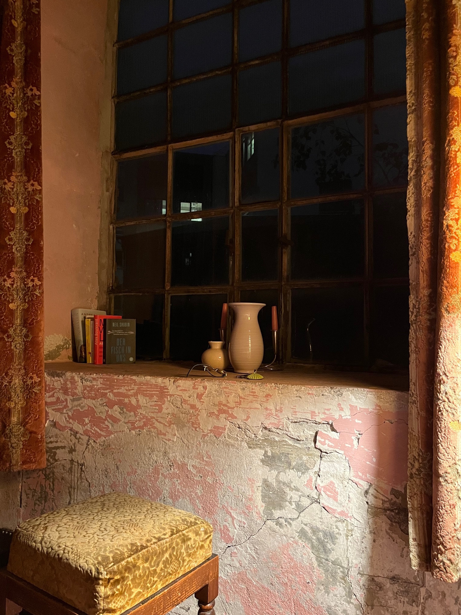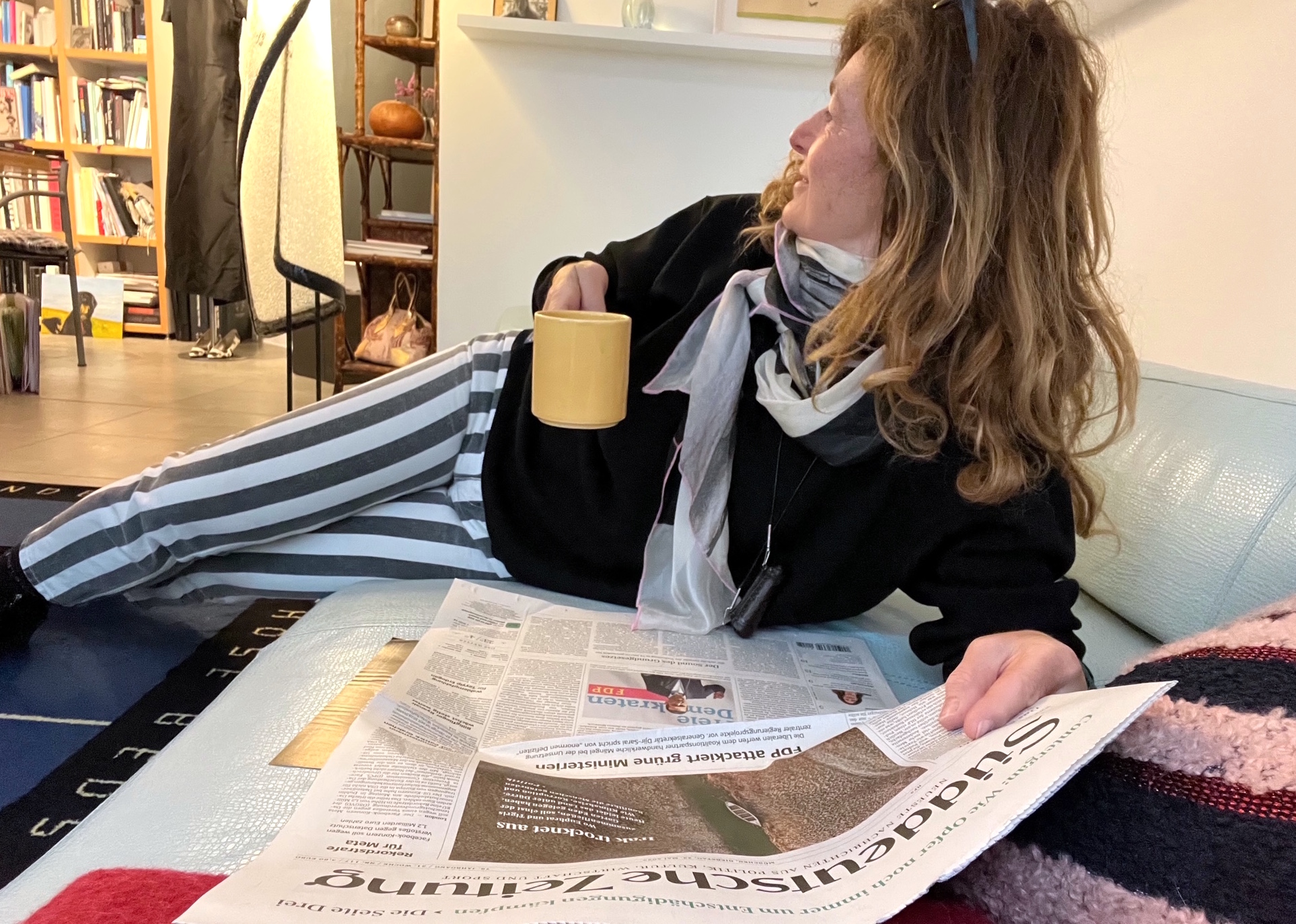 Der erste Kaffee ist herrlich, eine Synapsenschaltung nach der anderen geht auf ON. Ich lese die Zeitung. Jemand grinst durch das Fenster hinein, ich lächele und bleibe noch ein wenig in meiner Parallel-Welt der nächtlichen Traumgespinste oben im meinen Refugium im Tempel von 1844. Warm umschmeichelt mich die Seide.