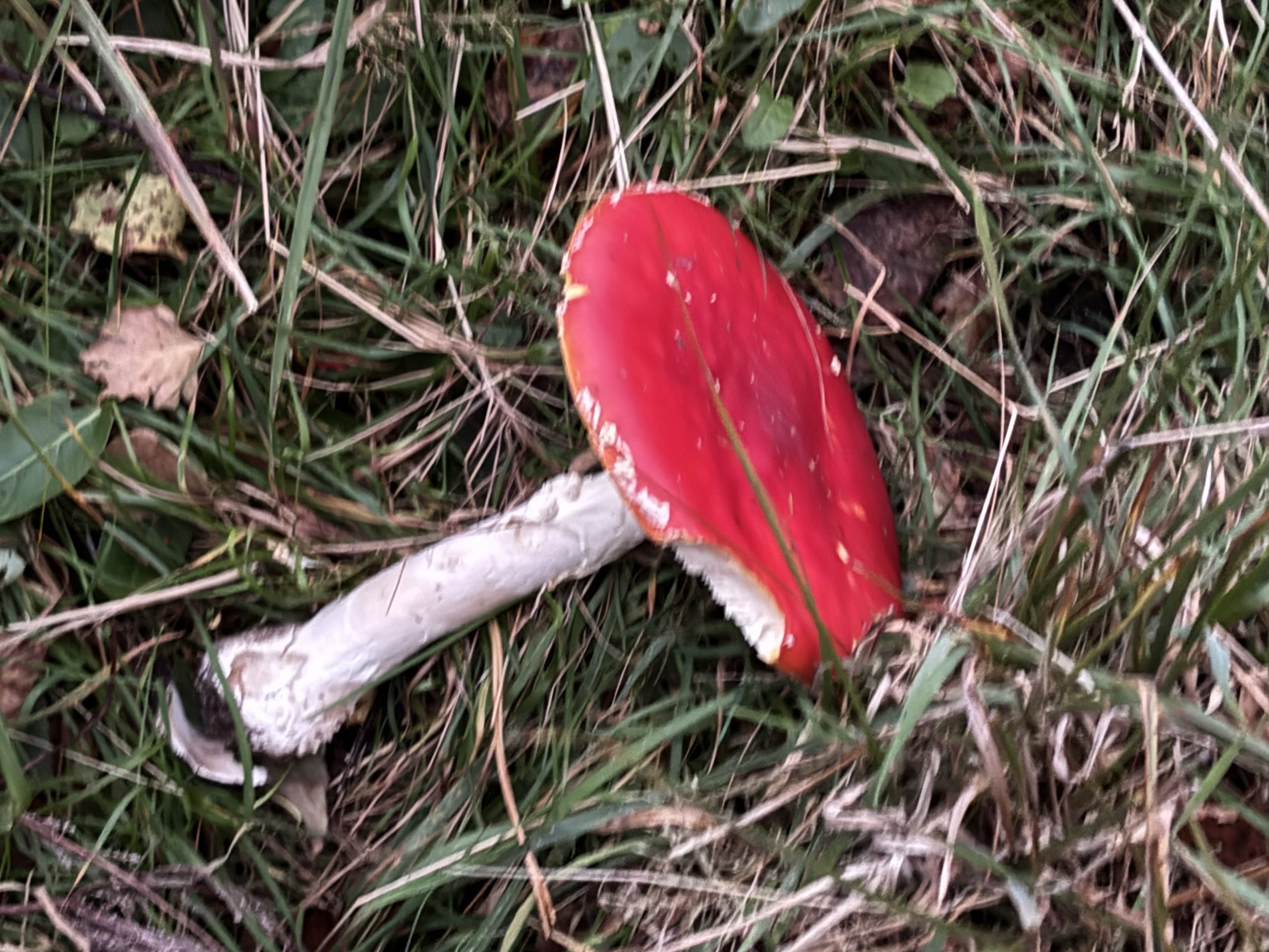 Amanita Muscaria lautet sein Name auf Latein, giftig ist er, und soll geholfen haben, Fliegen zu töten oder sie zumindest zu berauschen. Es gibt ihn in Märchen, bei Rotkäppchen, er ist bedrohlich und glücksbringend zugleich. Ein mystisches Wesen. Leise summe ich das Kinderlied von dem Männlein im Wald, so still und stumm. Genauso liegt er nun neben mir, still und stumm, mein Pilz.